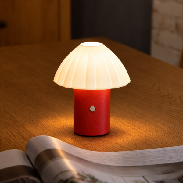 The Funghetto wireless lamp recharges in just 4 hours and guarantees 8 hours of battery life. To recharge, simply insert the Type-C cable; the red light will turn green when charging is complete.
