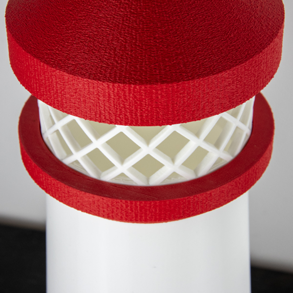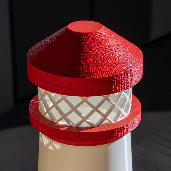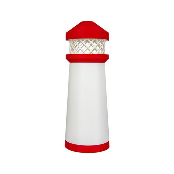 La lampada da tavolo a cavo Il Faro XL di Albore Design ispirata alla magia dei fari marittimi è stampata 3D con bioplastica sostenibile e viene rifinita e assemblata a mano con cura.