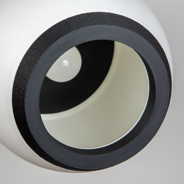 È stampata 3D con bioplastica sostenibile e viene rifinita e assemblata a mano con cura.