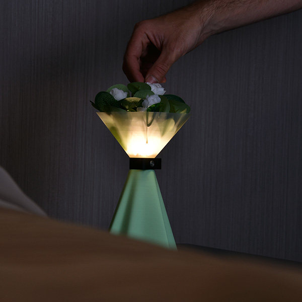“Per un corteggiamento, per un evento oppure per una semplice dimostrazione di affetto, il bouquet è riconosciuto a livello globale come simbolo di un certo savoir-faire ed è la fonte di ispirazione per questo mio progetto: la lampada wireless Bukè.”
