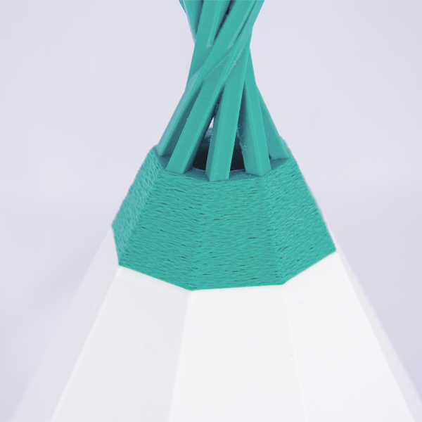 È stampata 3D con bioplastica sostenibile e viene rifinita e assemblata a mano con cura.