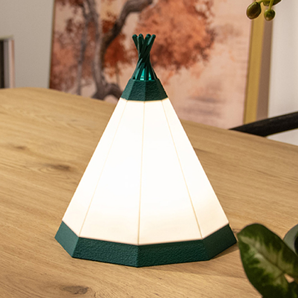 Il design nasce dall’iconica forma del tepee, simbolo di rifugio, equilibrio e connessione con la natura. Le linee essenziali e minimaliste trasformano questo ricordo in una lampada wireless moderna.